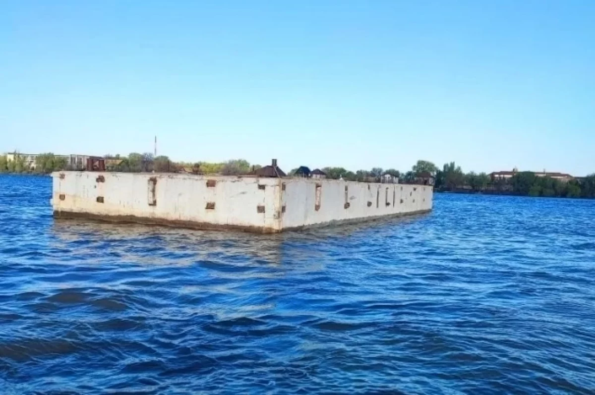 26 апреля астраханские службы получили сообщение о необычном объекте в Трусовском районе. Прямо под Новым мостом по течению плыла массивная бетонная понтонная переправа.