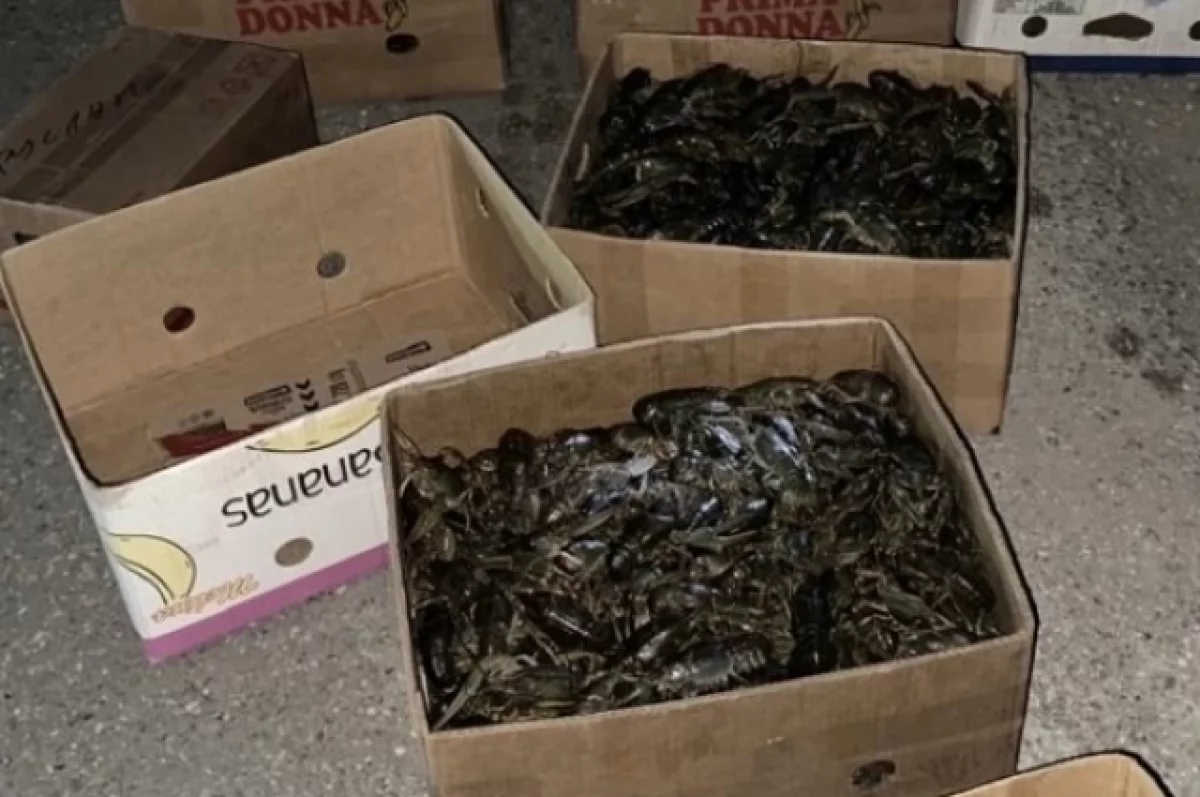 При осмотре салона и багажника инспекторы обнаружили 25 коробок, доверху набитых раками. Общий вес груза составил 214 килограммов. Никаких справок или документов, которые подтвердили бы законность улова, у водителя не оказалось.