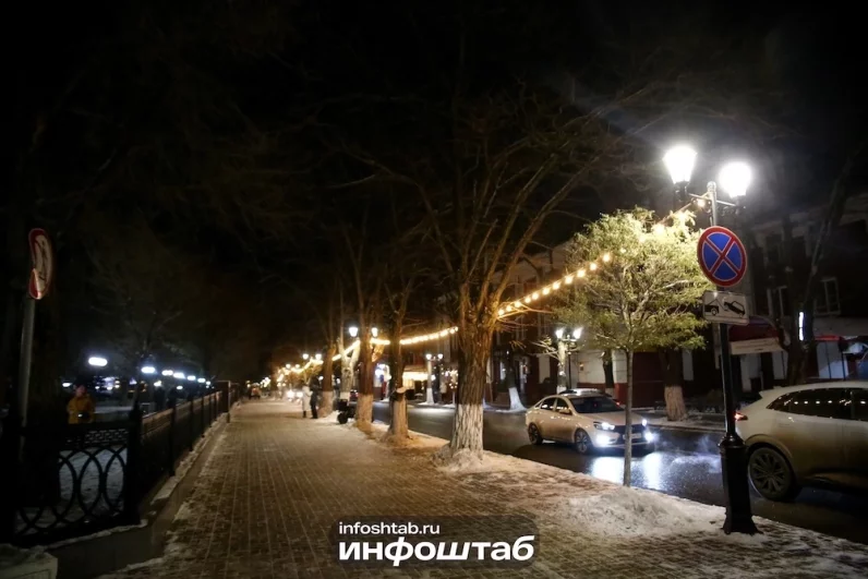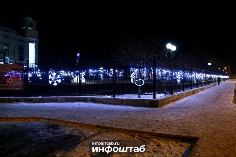 Фотокорреспондент «Инфоштаба» проложил праздничный маршрут через главные точки притяжения: от величественной площади Ленина до обновленных скверов. Мы прошли по историческому центру, где старинная архитектура в свете гирлянд выглядит особенно магически. В центре нашего внимания оказались не только крупные инсталляции, но и маленькие детали, создающие атмосферу праздника в каждом районе.