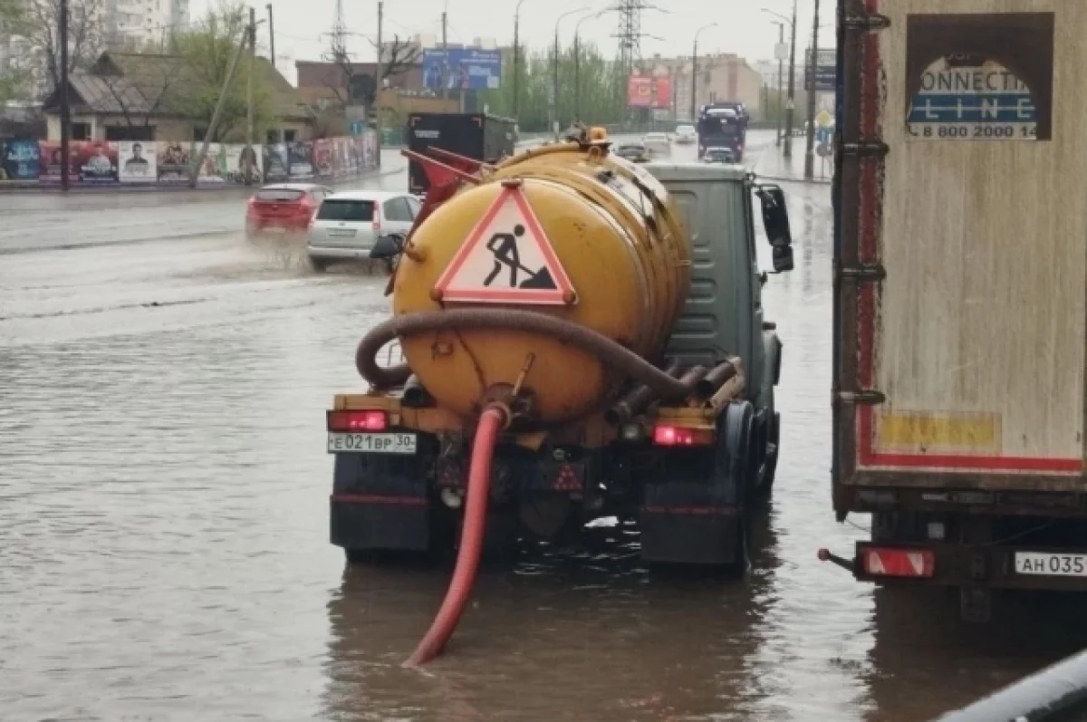 Со вчерашнего дня астраханские коммунальщики работают без перерыва, устраняя последствия сильного ливня. Спецтехника городских предприятий и привлеченные машины выехали на адреса еще во время дождя.